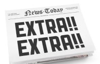 A stack of newspapers with headline "Extra Extra". Isolated on white.