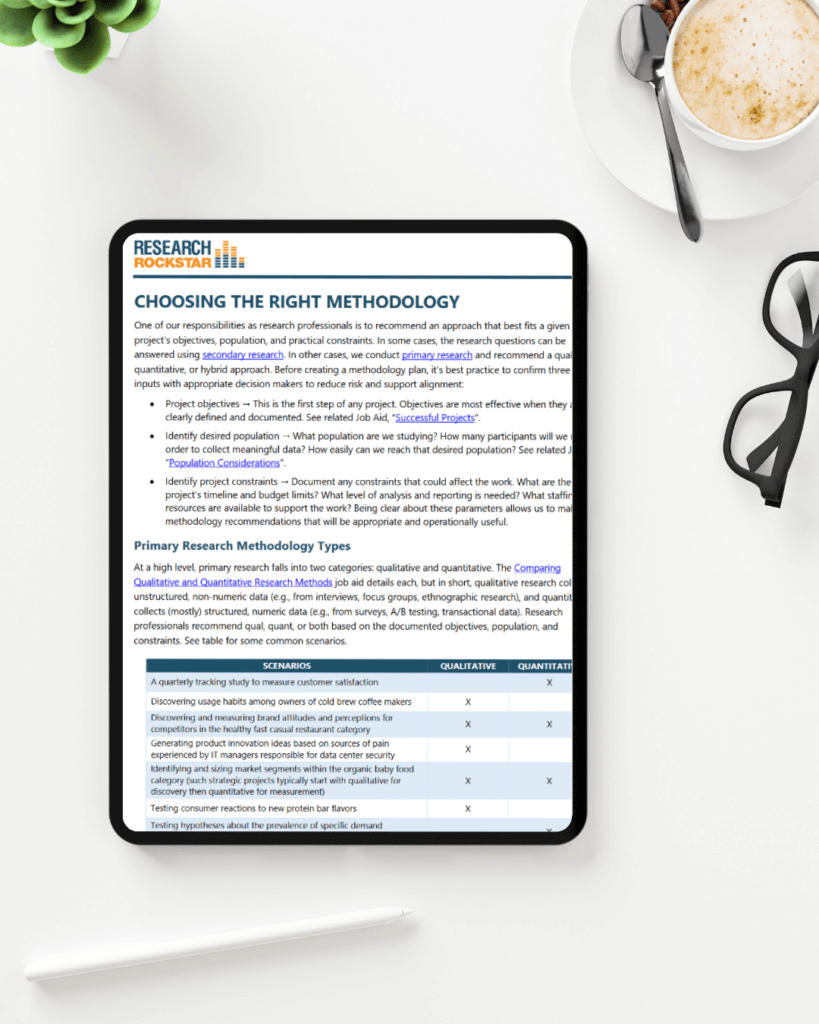 Can’t wait for the Live Events to dig into these topics? Don’t fret. While you wait, current Research Rockstar students can access related job aids—perfect for a little microlearning before showtime. Access them right now: